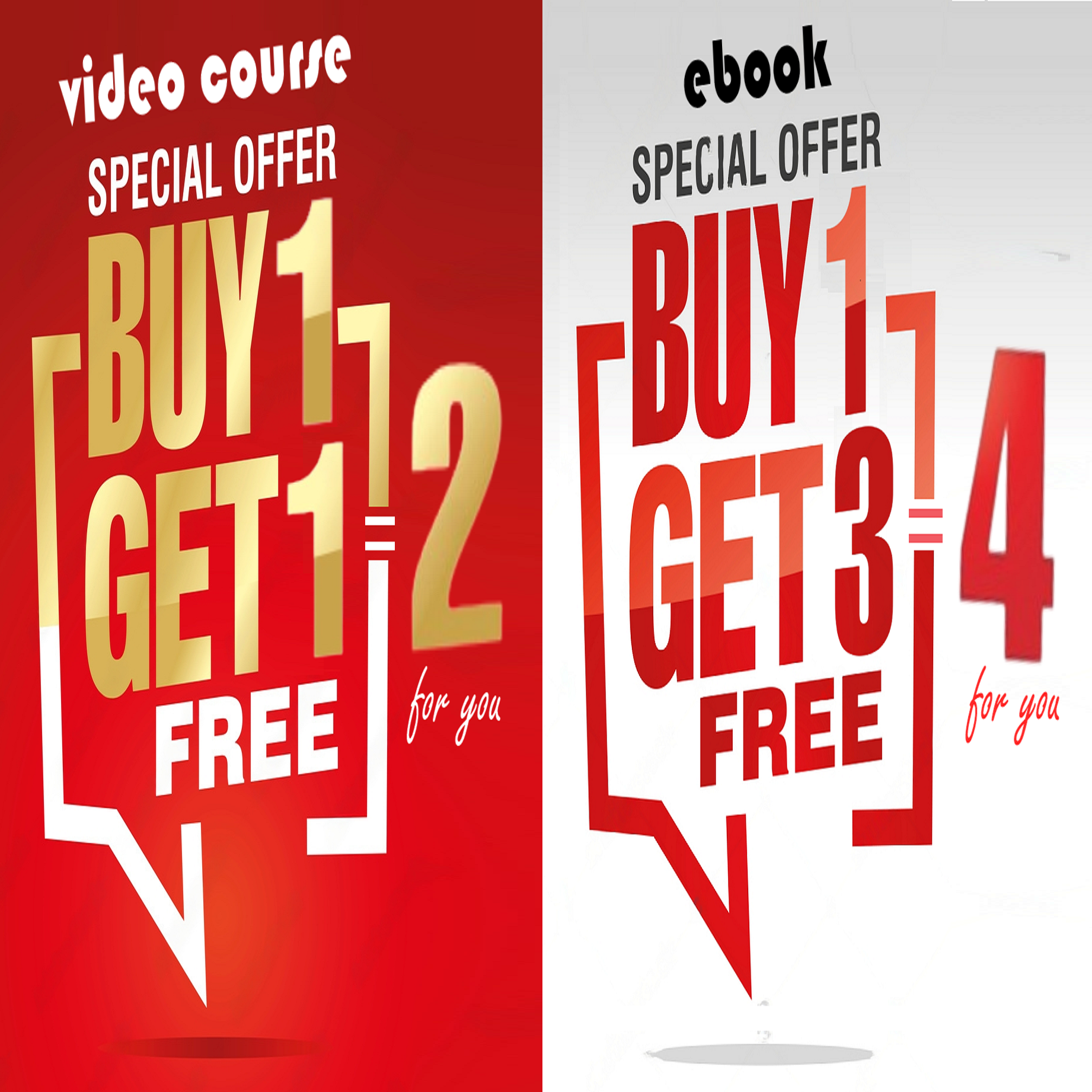 Setiap pembelian 1 video course akan mendapatkan free 1 video course, yg berarti pembeli akan mendpatkan 2 video course. untuk setiap pembelian ebook (sesuai logo) akan mendapatkan free 3 ebook, yg berarti pembeli akan mendpatkan 4 ebook * free/ bonus adalah harga sama dengan produk yang dibeli